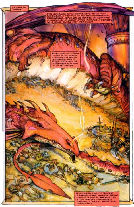 BILBO le HOBBIT est à la base un livre pour enfant. Il existe une BD, en français avec des illustrations de David Wenzel. Son style combine la plume classique aux techniques de l'aquarelle et à la narration graphique.
